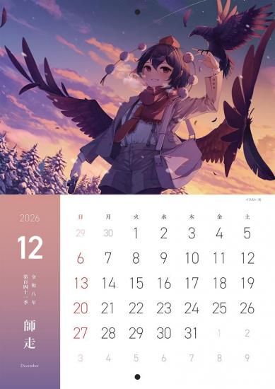 ■コメント:文ちゃんと辿る、二十一年目の四季。 1年を通し射命丸文が主役の2026年(第百四十一季)壁掛けカレンダーです。